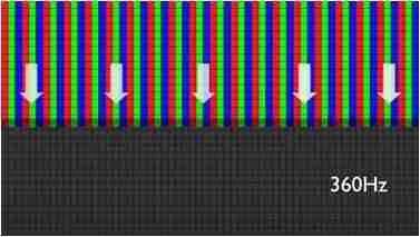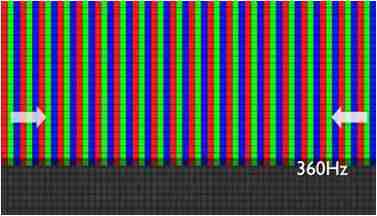传统液晶驱动是从左到右单向进行,,在画面更新速度愈来越愈快的情况下,,,位于驱动线路末端的右下角区域,,,,画素的闸极来不及在短时间内获得足够电压,,,无法显示出正确的颜色资讯。。。。 |