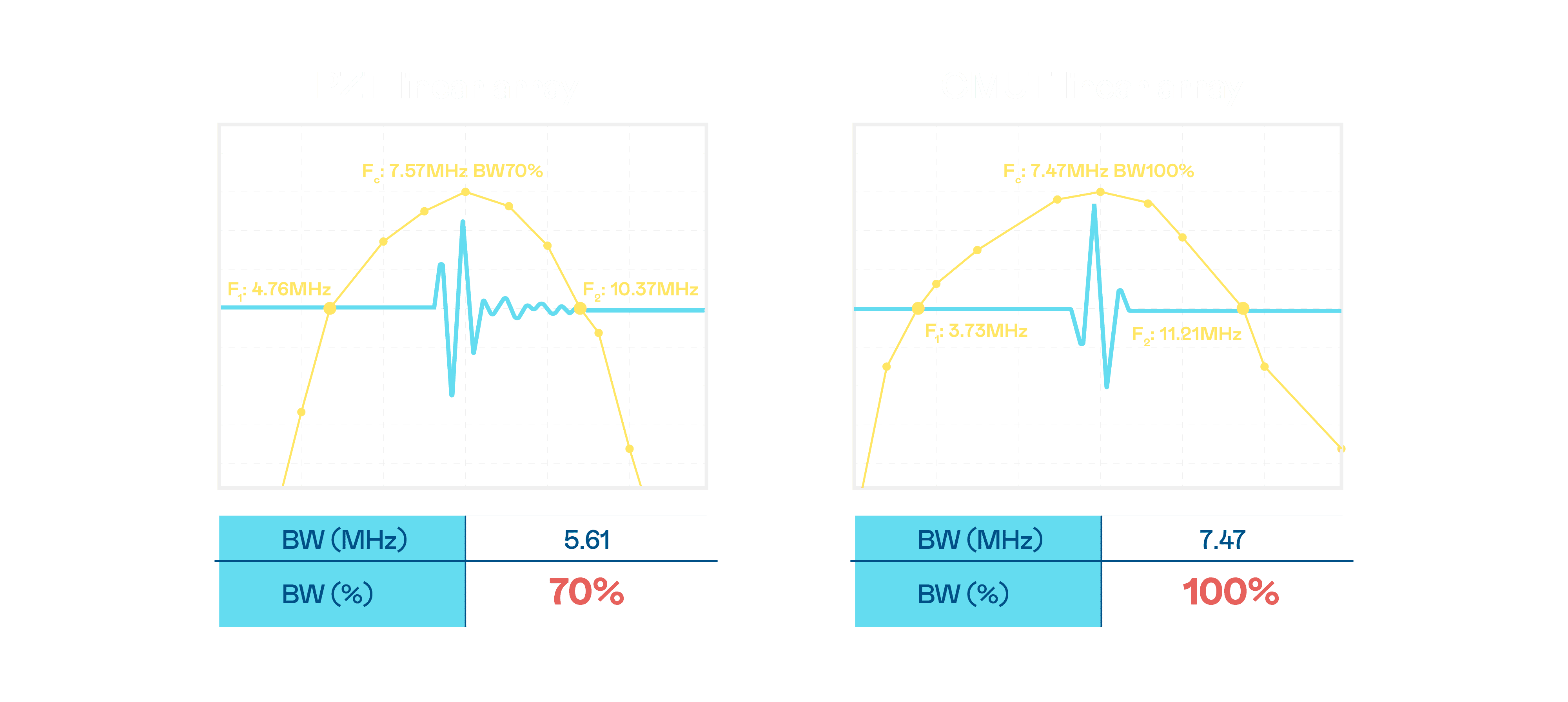超音波影像的解析度高低,,首先取决于探头能发出的讯号频宽。。。MG电玩 CMUT 可提供高清晰的超音波讯号,,,提供高频宽、、、高灵敏度、、影像纹理细节更高的超音波影像,,,,协助医护人员缩短影像判读时间及利用精准的医疗影像进行诊断。。。。